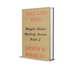 The shelves along the wall are dedicated to the Judith A. Barrett Books. Each series has its own shelf: Maggie Sloan Thriller Series, Jenna Ross Thriller Series, Wren and Rascal Mystery Series, Riley Malloy Mystery Series, Donut Lady Cozy Mystery Series, and Grid Down Survival Series.