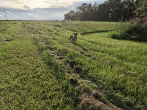 Toby helps with mowing by clearing the mowed area of grasshoppers that fly up, in case you wondered why I don’t help with mowing.