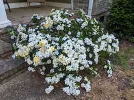 The fragrant, beautiful gardenias in the front of our house have bloomed every May since we bought the house in 2018, and we know they were there when the previous owners bought the house in 2013, so they had survived the high and low temperatures that fluctuated from year to year for more than ten years.